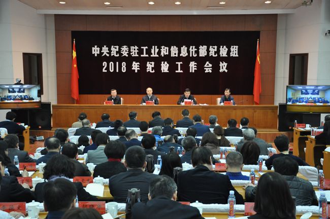 2018年1月31日,驻工业和信息化部纪检组召开2018年纪检工作会议,深入学习贯彻习近平新时代中国特色社会主义思想,全面贯彻落实党的十九大和十九届中央纪委二次全会精神,回顾总结2017年纪检工作,安排部署2018年工作任务。工业和信息化部党组成员、驻部纪检组组长郭开朗同志参会并讲话,驻部纪检组副组长李志宏同志主持会议。会议采用电视电话会议形式,设立主会场和各省(自治区、直辖市)及绵阳市分会场,工业和信息化部、国家国防科技工业局、国家烟草专卖局、中国工程物理研究院系统共760多人参加会议。