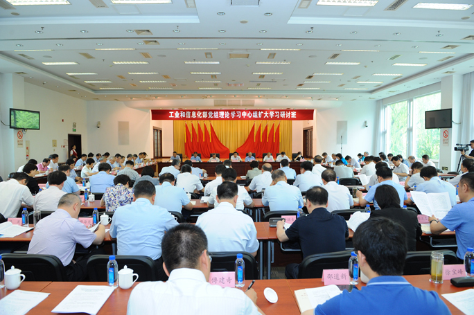 6月27日-6月29日,工业和信息化部党组在京举办理论学习中心组扩大学习研讨班,围绕深入学习贯彻习近平新时代中国特色社会主义思想和党的十九大精神,紧密结合“不忘初心、牢记使命”主题教育,聚焦制造强国和网络强国建设,扎实开展集中学习研讨。中央“不忘初心、牢记使命”主题教育第22指导组副组长刘越同志和沈群英同志到会指导。