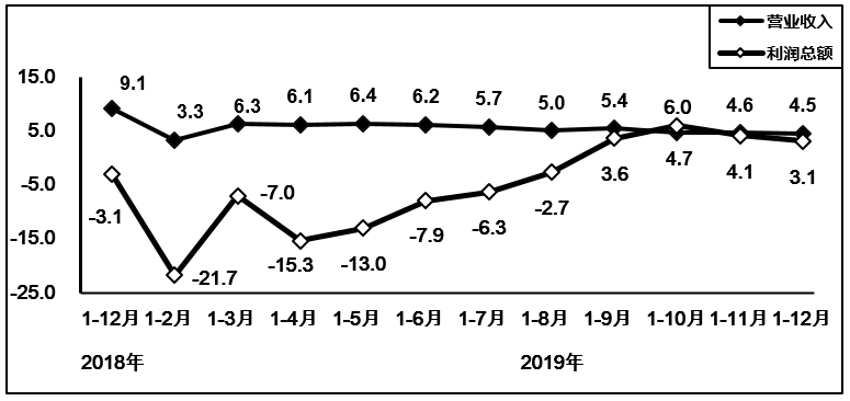 2019年,计算机制造业营业收入同比增长3.9%,利润同比增长2.6%。