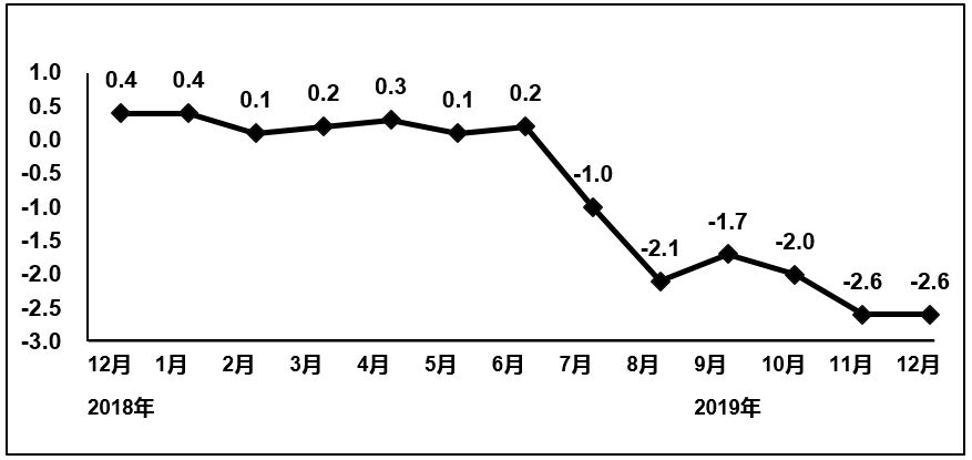 图3 2018年12月以来电子信息制造业PPI分月增速(%)