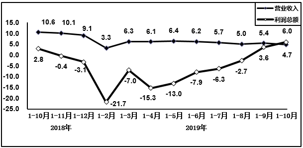 图2 2018年10月以来电子信息制造业营业收入、利润增速变动情况(%)