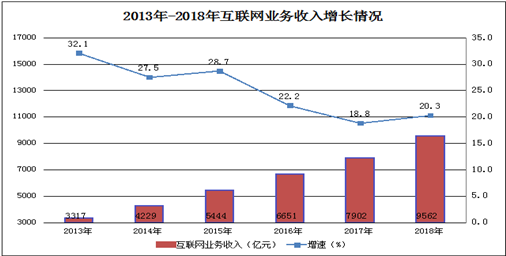 互联网业务收入保持较高增速。2018年,我国规模以上②互联网和相关服务企业(简称互联网企业)完成业务收入9562亿元,比上年增长20.3%。主要省份保持良好增长态势,互联网业务收入总量居前三位的广东、上海、北京互联网业务收入分别增长26.5%、20%和25.2%。