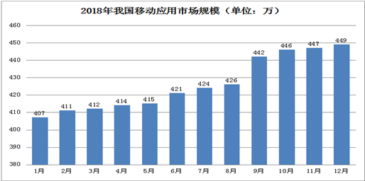 移动互联网应用程序数量缓步增长。2018年,我国市场上监测到的APP数量净增42万款,总量达到449万款;其中我国本土第三方应用商店的APP超过268万款,苹果商店(中国区)移动应用数约181万款。