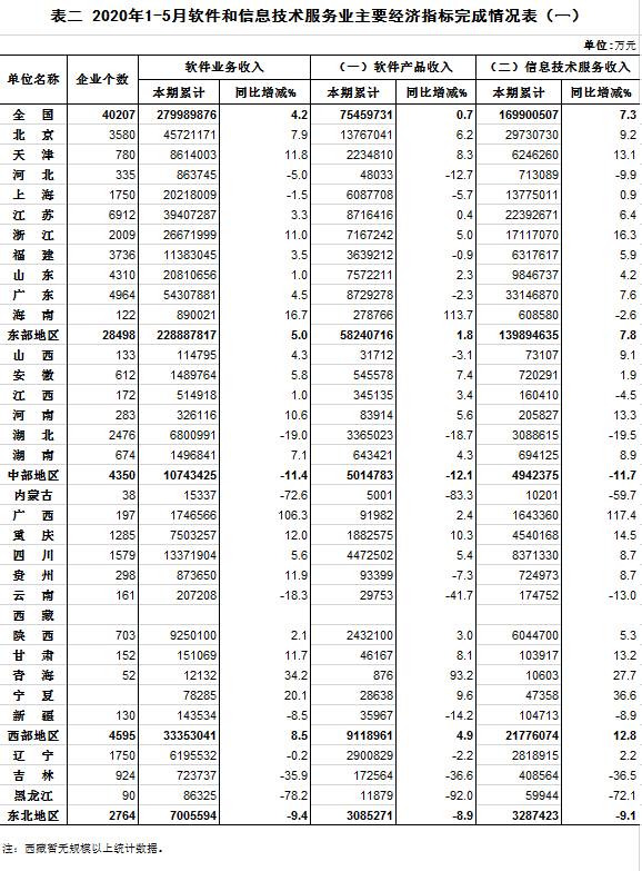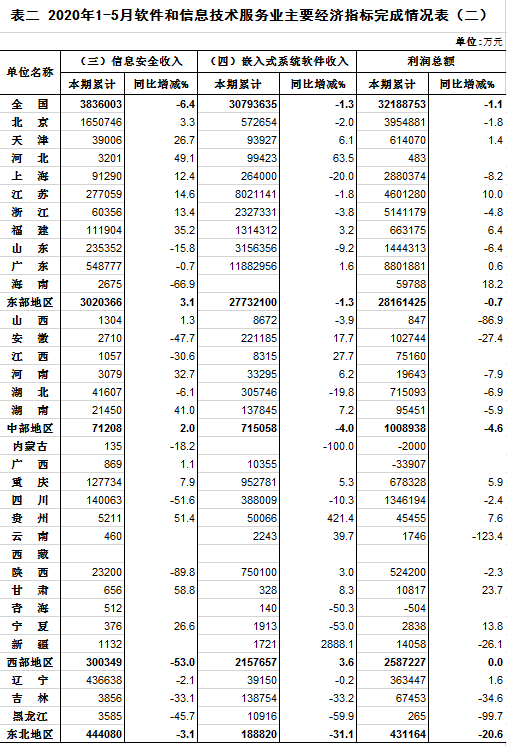 2020年1-5月软件和信息技术服务业主要经济指标完成情况表