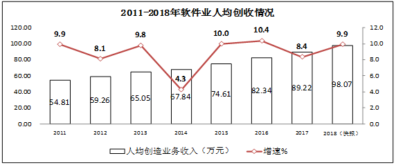 盈利能力稳步提升。经初步统计,2018年软件和信息技术服务业实现利润总额8079亿元,同比增长9.7%;行业人均创造业务收入98.06万元,同比增长9.6%,高质量发展成效初显。
