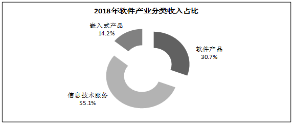 软件产品收入实现较快增长。2018年,全行业实现软件产品收入19353亿元,同比增长12.1%,占全行业比重为30.7%。其中,信息安全和工业软件产品实现收入1698和1477亿元,分别增长14.8%和14.2%,为支撑信息系统安全和工业领域的自主可控发展发挥重要作用。
