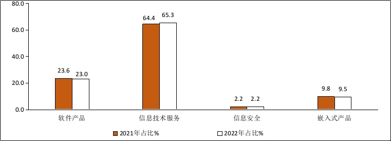 图4 2021年和2022年1-2月份软件业分类收入占比情况