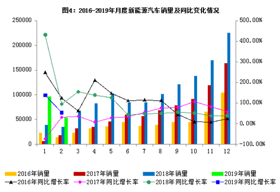 2月,新能源汽车产销分别完成5.9万辆和5.3万辆,同比分别增长50.9%和53.6%。其中,纯电动汽车产销分别完成4.4万辆和4万辆,同比分别增长51.3%和69.4%;插电式混合动力汽车产销分别完成1.5万辆和1.3万辆,同比分别增长48.2%和18.6%。