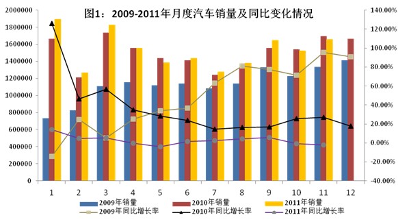 2011年1~11月,我国汽车产销量分别为1672.83万辆和1681.56万辆,同比分别增长2.00%和2.56%。11月,汽车生产和销售市场同比分别下降3.41%和2.42%。