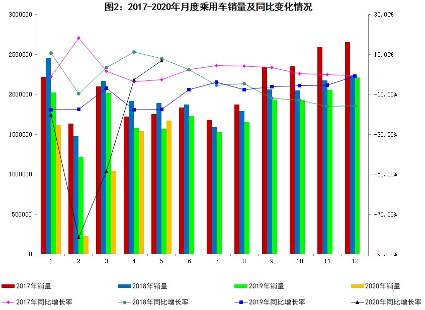 2020年5月,随着我国经济社会运行逐步趋于正常,稳定和促进汽车消费相关政策效应显现,汽车市场逐步恢复,5月当月汽车产销呈现两位数增长。