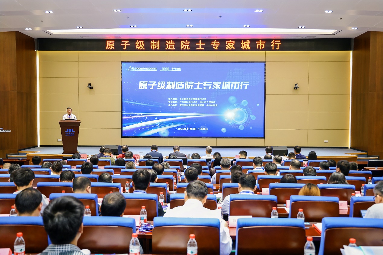2025年11月8日,原子级制造“院士专家城市行”系列活动在广东省佛山市举办。工业和信息化部高新技术司,福建、湖北、湖南、广东、重庆、四川、佛山等地方相关部门代表,叶恒强、卢秉恒、迟力峰等两院院士专家以及有关企事业单位、投融资机构等百余名代表参加。