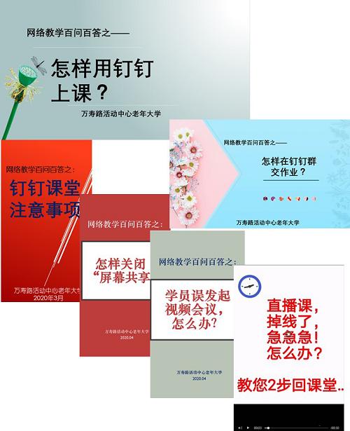 万寿路活动中心负责同志对老年大学网络教学情况进行阶段性总结。首先以一段小视频,展示网络教学的概要情况,并从领导高度关心、学校组织精心、老师教学尽心、学员学习用心四方面总结网络教学情况。