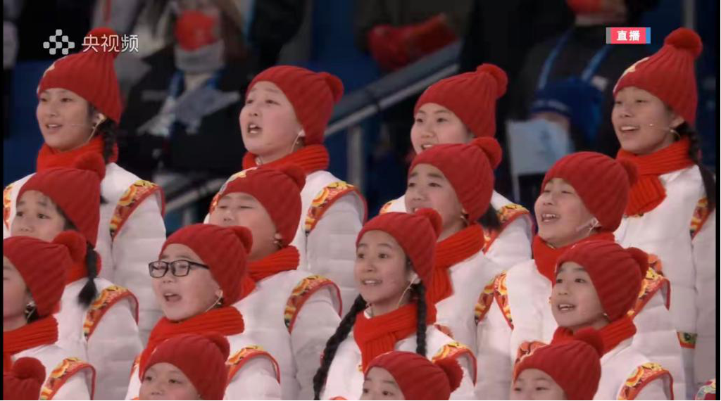 北京冬奥会上开幕式上佩戴耳返设备的合唱团(图片来自央视直播截图)