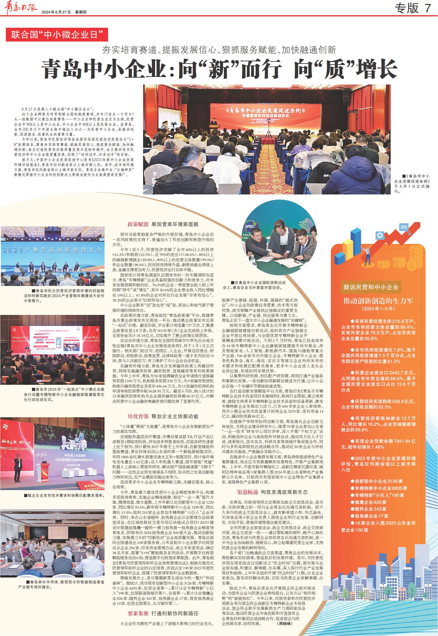 ■青岛市2024年“一起益企”中小微企业服务行动暨专精特新中小企业融链固链建链常态化行动启动仪式。