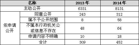 2014年各通信管理局共主动公开政府信息8131条;收到政府信息公开申请452项,其中“同意公开”312项,“属于不予公开范围”58项,“依法不属于本行政机关公开或信息不存在”64项,“申请内容不明确”18项;2014年各通信管理局因政府信息公开被提起行政诉讼的案件9件;2014年各通信管理局全年没有收取政府信息公开方面的费用。