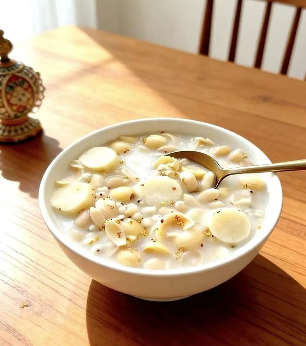 山药健脾益肾,薏米祛湿,百合润肺宁心,大枣补血。这个粥“肝脾肺”同调,既防肝气过旺克伐脾胃,又润春燥护肺。作为早餐食用,老少咸宜。如果脾胃虚寒明显,可将薏米适当减少,加入几片生姜同煮。