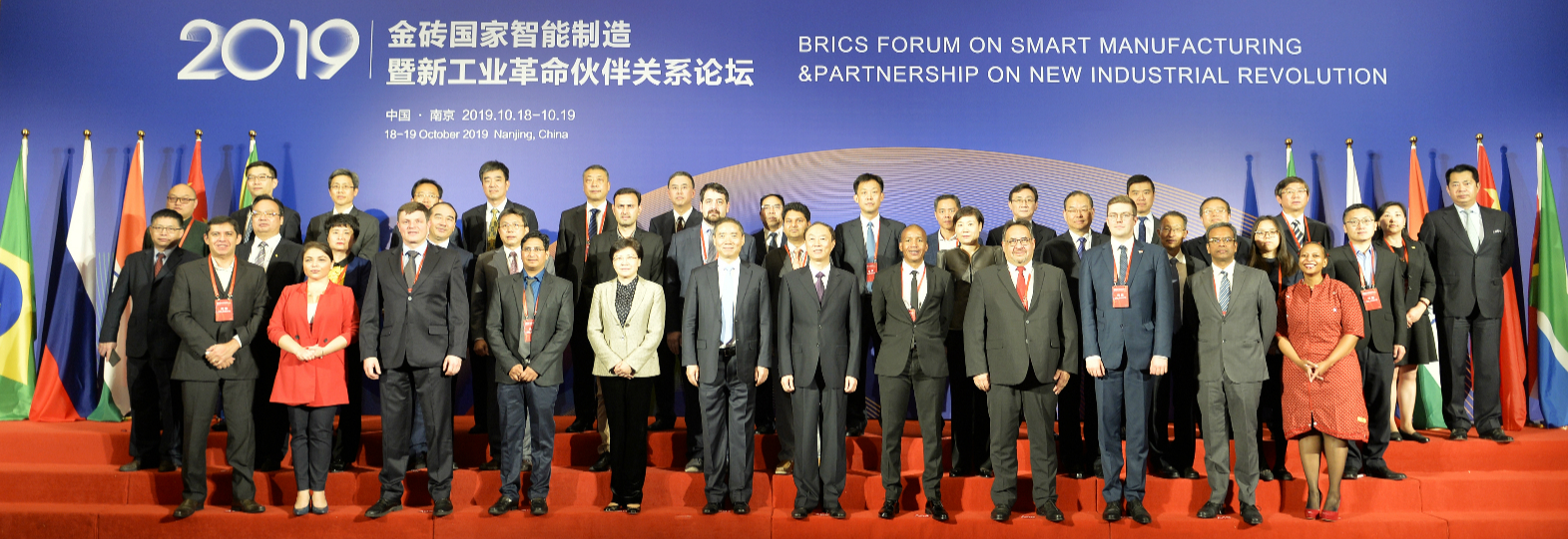 本次论坛由工业和信息化部、外交部、科技部、江苏省人民政府共同主办,工业和信息化部国际经济技术合作中心、江苏省工业和信息化厅、南京市人民政府共同承办。巴西经济部、俄罗斯工贸部、印度商工部、南非电信与邮政服务部、南非第四次工业革命总统委员会以及巴西航空工业公司、俄罗斯工业发展基金会、印度塔塔公司、徐工、海尔等金砖各国政府、企业、研究机构和联合国工发组织代表,以“数字化和工业化”为主题,围绕金砖国家智能制造发展趋势和金砖国家新工业革命伙伴关系等议题进行了广泛深入的研讨。工业和信息化部国际合作司、办公厅、规划司、财务司、科技司、中小企业局、装备工业司、信息化和软件服务业司、赛迪研究院、国际经济技术合作中心、人才交流中心、中小企业中心、装备中心有关负责同志,科技部、国务院发展研究中心、金砖智库中方理事会和江苏省、南京市有关部门、企业以及其他金砖国家政府、企业、研究机构共计100余名中外方代表参加会议。