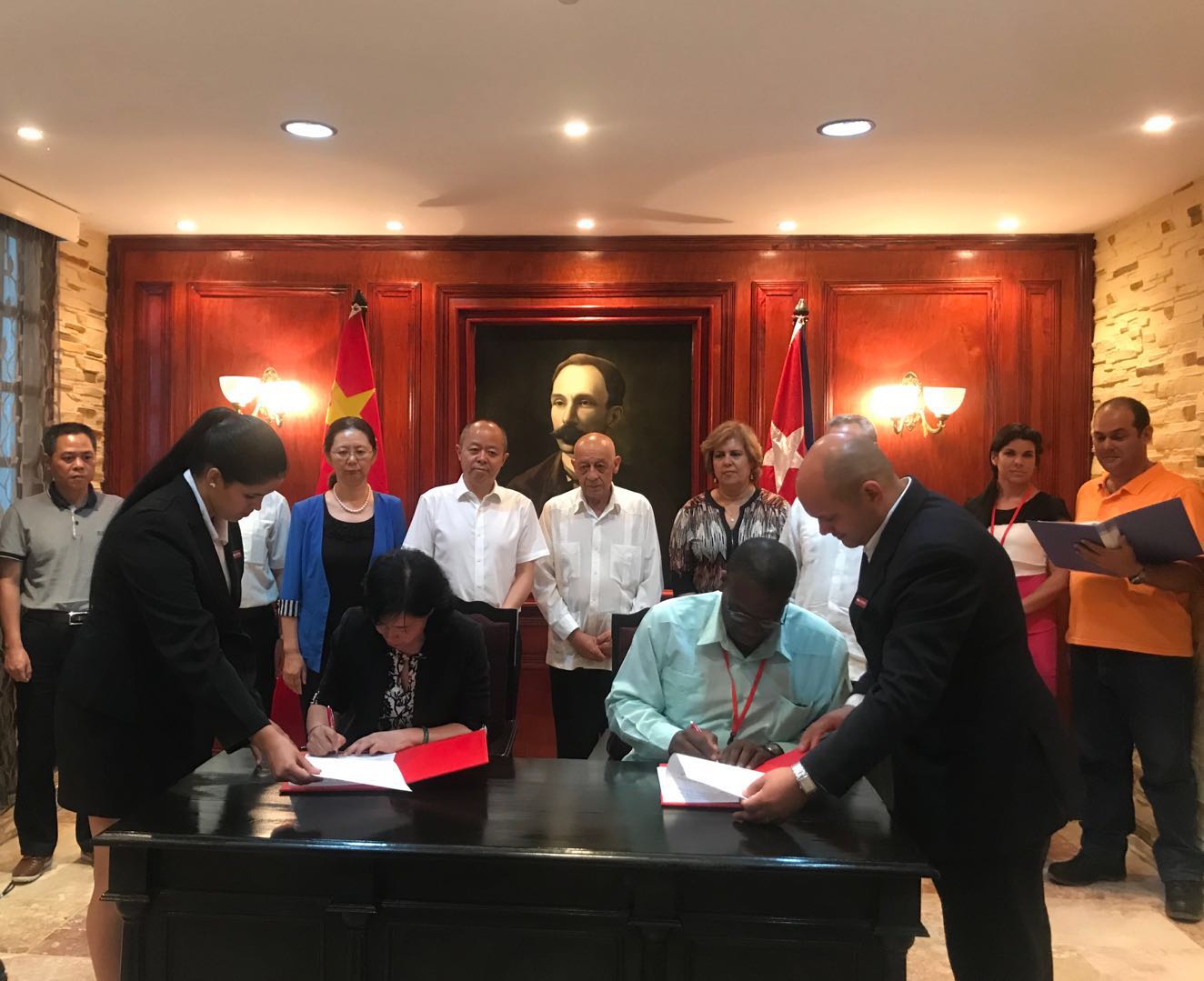 在王江平副部长和古巴工业部克鲁兹部长见证下,工业和信息化部国际合作司司长赵永红与古巴工业部工业管理司司长卡洛斯分别代表双方签署了关于落实两部间工业领域合作谅解备忘录2018-2020年行动计划。