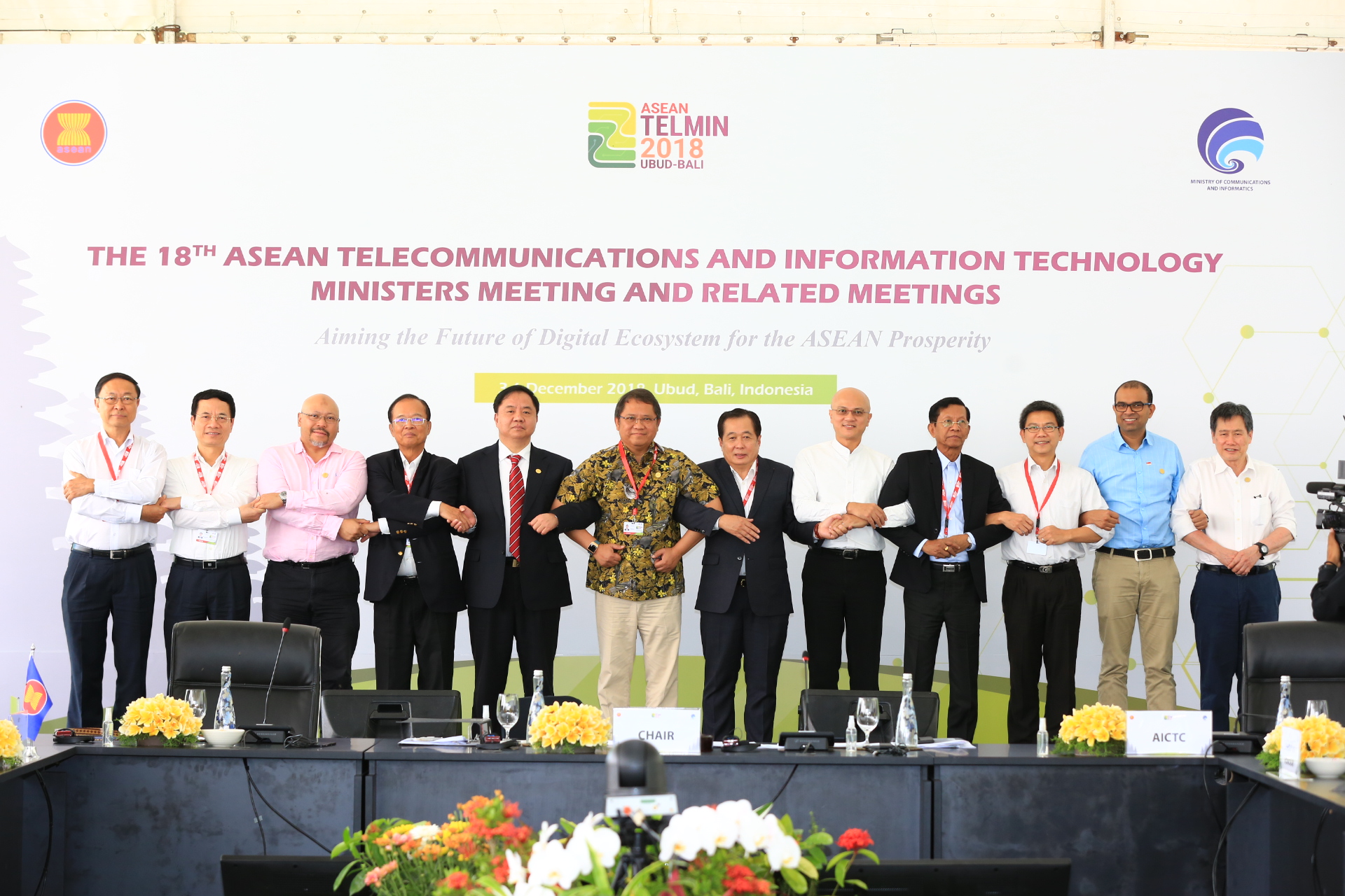 2018年12月6日,工业和信息化部副部长陈肇雄在印度尼西亚巴厘岛与印度尼西亚通信和信息技术部部长、东盟电信部长会议主席鲁迪安达拉共同主持了第十三次中国-东盟电信部长会议。会议审议通过了2019年中国-东盟信息通信合作计划、第十四次中国-东盟电信高官会报告和中国-东盟信息通信合作联合声明,续签了《中国-东盟信息通信技术合作谅解备忘录》。