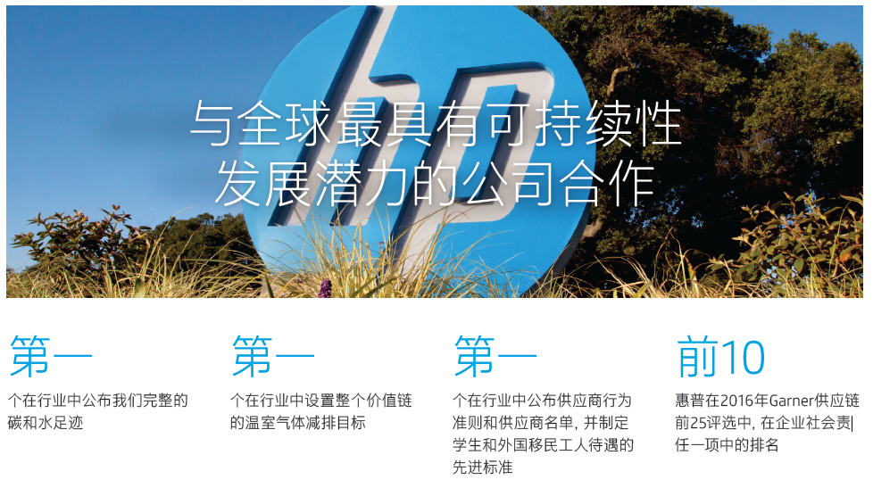惠普执行委员会作为绿色供应链执行专门机构,各事业部及全球职能部门供应链高级副总裁均须向执行委员会报告相关计划。