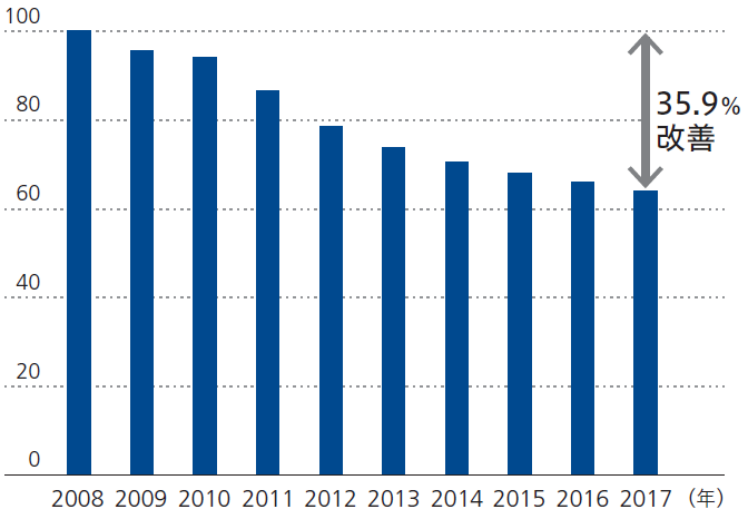 图1:2008-2017年单位产品全生命周期CO2排放改善指数变化情况