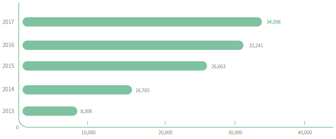 2017 年佳能大连在节能环保方面开展了空压机节能改造、休息日附带设备停机、LED 照明改造等项目,其中空压机改造项目的实施每年可节电20.5 万千瓦时,减排二氧化碳146 吨。采用LED 新能源照明,完成4200 根LED 照明改造,可实现年节电77 万千瓦时,减排二氧化碳547 吨。2017 年佳能大连获得“大连市能源统计工作先进单位奖”。