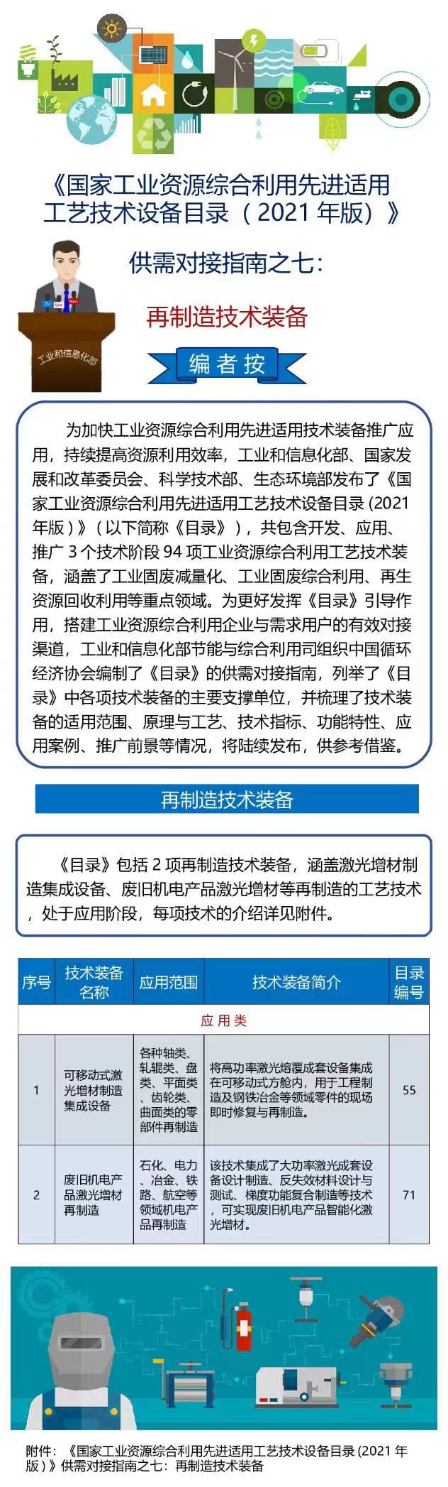 《国家工业资源综合利用先进适用工艺技术设备目录(2021年版)》供需对接指南之七——再制造技术装备