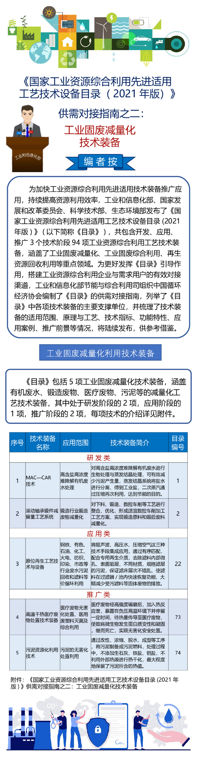 《国家工业资源综合利用先进适用工艺技术设备目录( 2021年版 )》供需对接指南之二——工业固废减量化技术装备