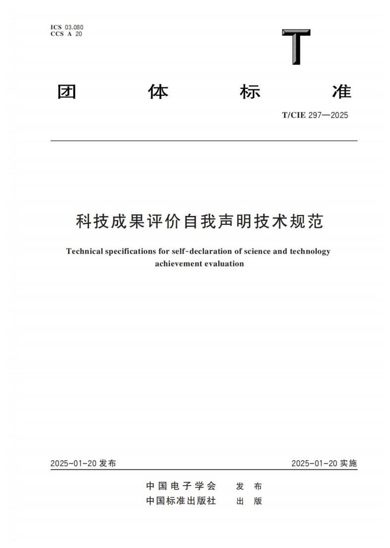 近日,我国科技成果评价领域自我声明团体标准《科技成果评价自我声明技术规范》(T/CIE 297 - 2025)正式发布。