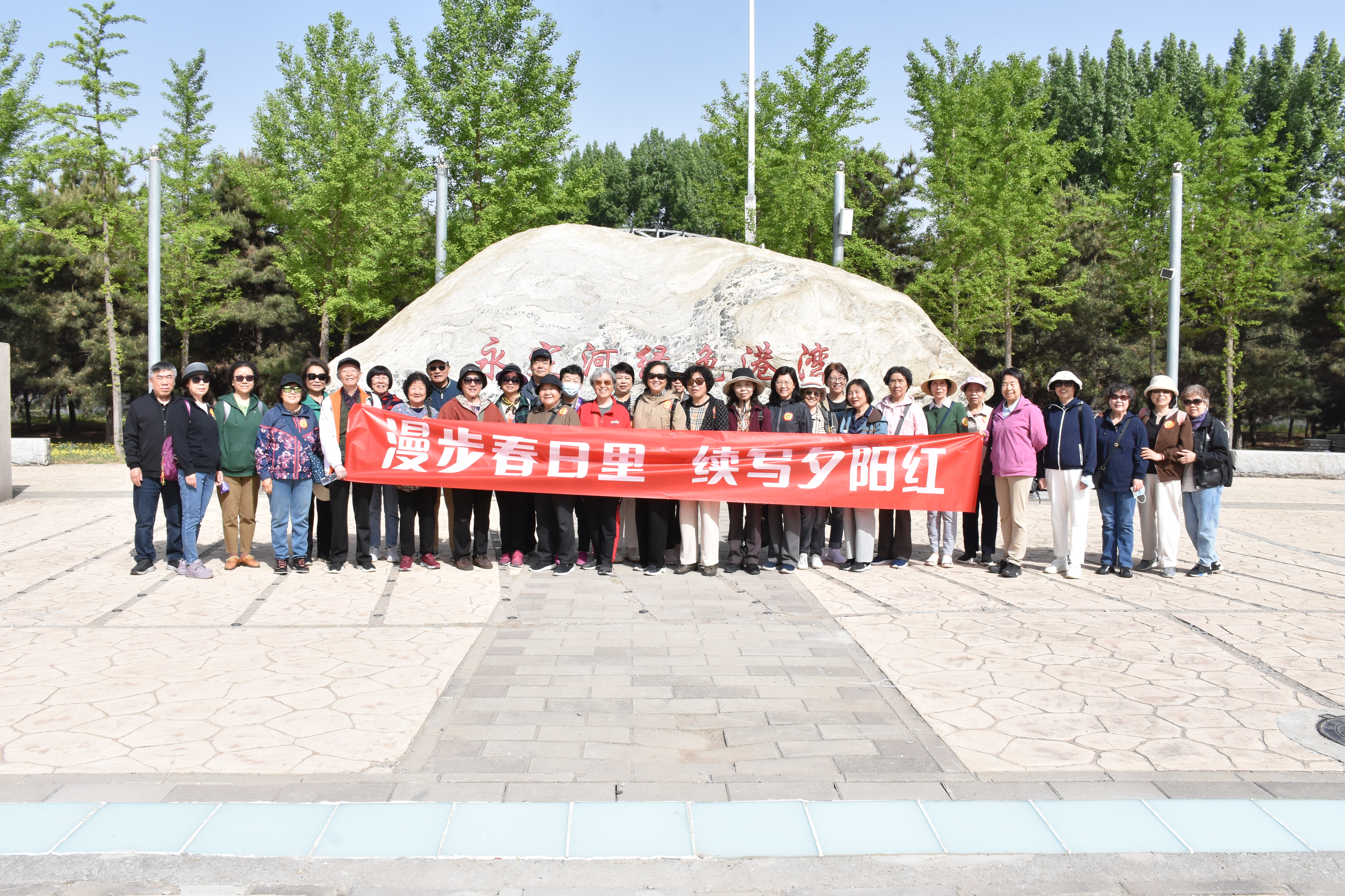 抵达永定河绿色港湾后,老同志们集体在广场温馨合影,大家围站成一圈,笑容灿烂。随着快门按下,这一刻的欢乐与团结被永远定格。许多老同志感慨:“这样的活动让我们感觉又回到了年轻时代,大家此刻有一个共同的心愿,那就是一起为美好的记忆添彩。”