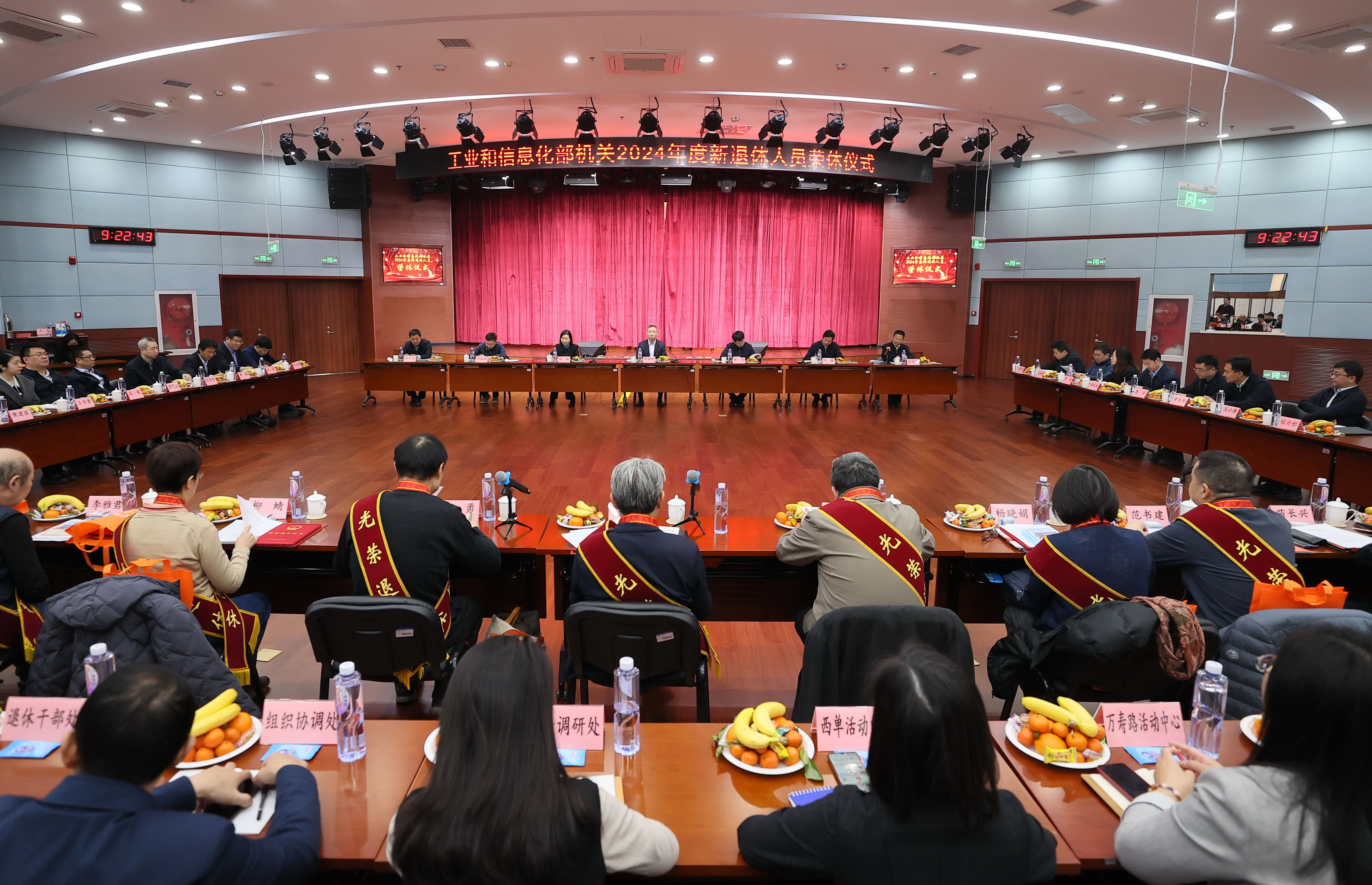 2月26日,工业和信息化部举办部机关2024年度新退休人员荣休仪式。部党组成员、副部长,部离退休干部工作领导小组组长辛国斌出席仪式并讲话,为新退休人员代表佩戴纪念章,颁发荣誉证书,送上感谢信。