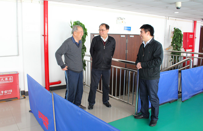 3月18日上午,离退休干部局在西单办公区六号楼二层活动中心举办部机关老同志乒乓球交流赛。离退休干部局局长吴亚军、副局长蒋艳亲临活动现场,看望参赛的老同志,鼓励西单和万寿路两个片区的老同志加强沟通和交流,借助交流赛的平台愉悦身心、健康体魄。