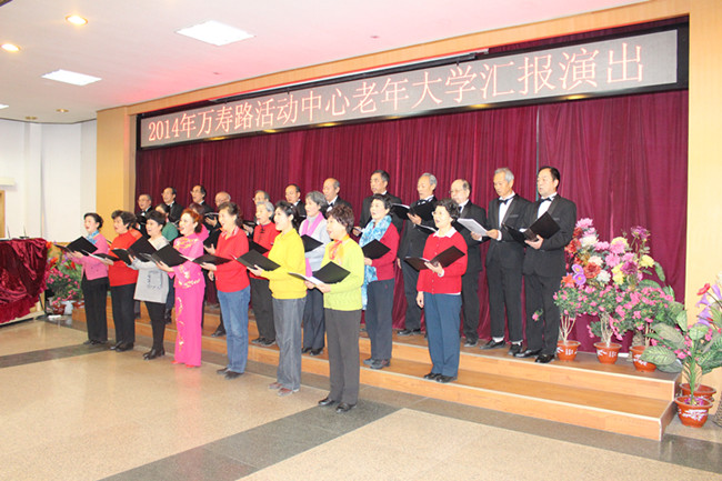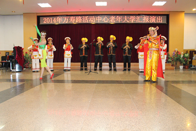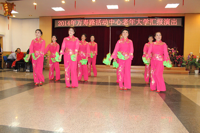 12月26日上午,万寿路活动中心老年大学组织开展2014年汇报演出活动。离退休干部局局长吴亚军出席活动并致辞,局党委书记张勇出席活动,万寿路活动中心老年大学全体师生和离退休干部局有关工作人员参加活动。