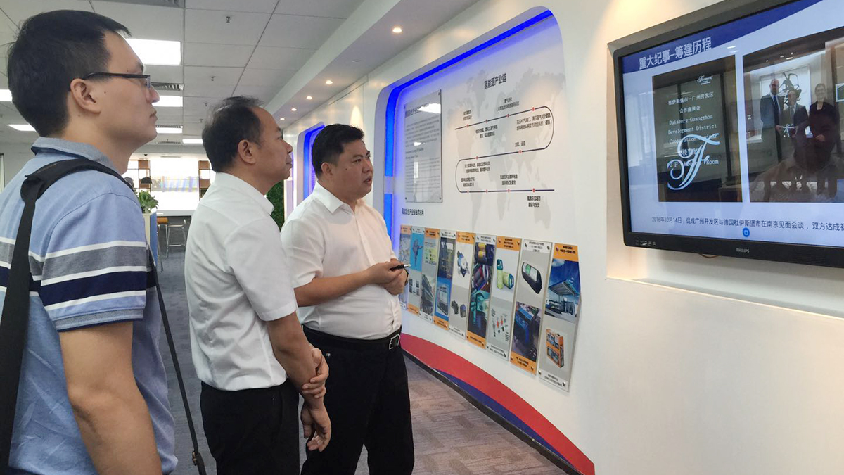 7月6日,广州市中小企业局叶华东局长带队到黄埔区调研中国(广州)中小企业先进制造业中外合作区建设。调研组参观了广东中欧企业合作促进中心,并与广东中欧企业合作促进中心负责人就中外合作区建设进行了座谈交流。叶华东局长希望广东中欧企业合作促进中心围绕我市重点发展的“IAB”、“NEM”等产业,做好引智、引技、并购、国际产能合作对接服务,加大德国弗劳恩霍夫研究院等重点项目引进力度,带动广州市产业转型升级。