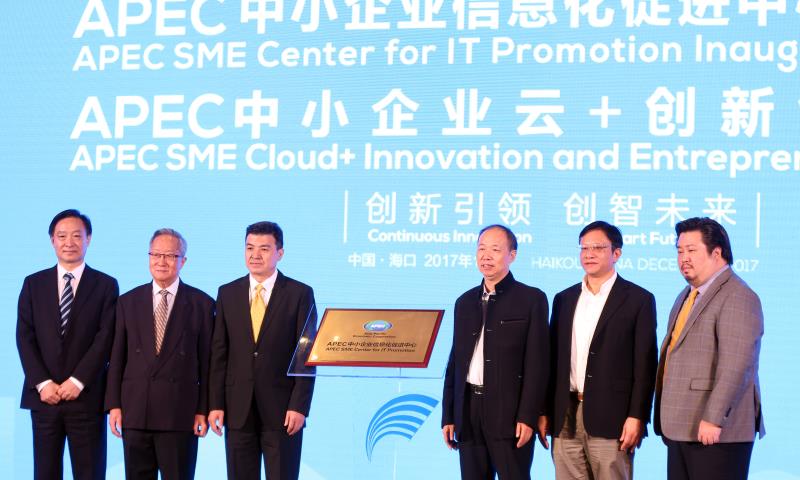 2017年12月19日,APEC中小企业信息化促进中心成立大会暨APEC中小企业云+创新创业论坛在海口召开。工业和信息化部中小企业局局长马向晖出席并致辞。