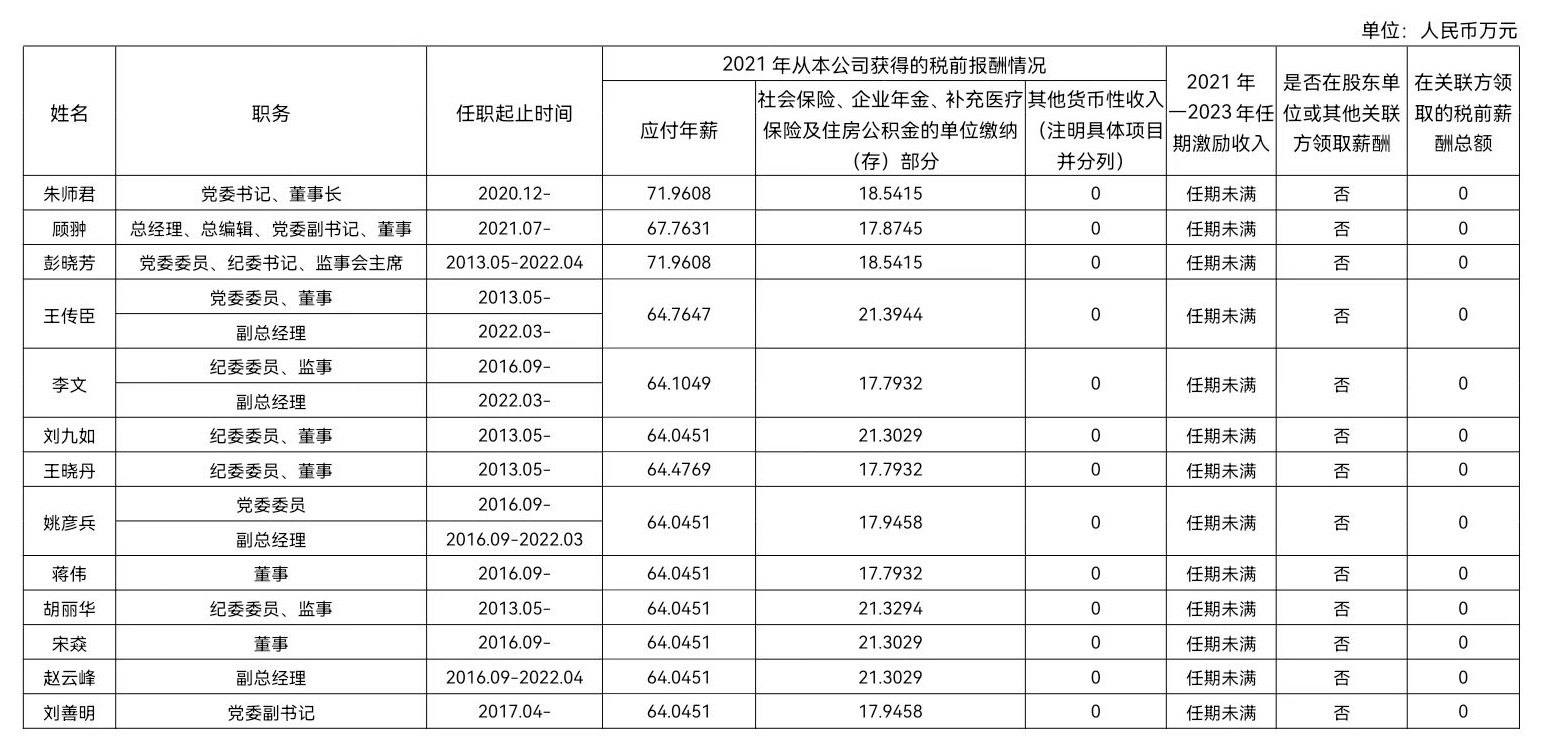 表二 中国工信出版传媒集团有限责任公司2021年负责人薪酬信息