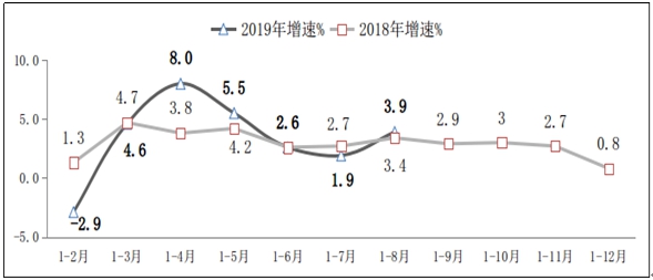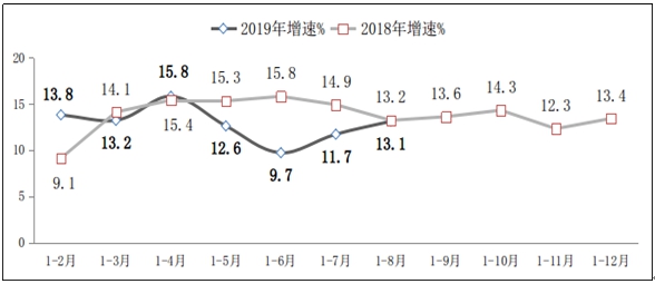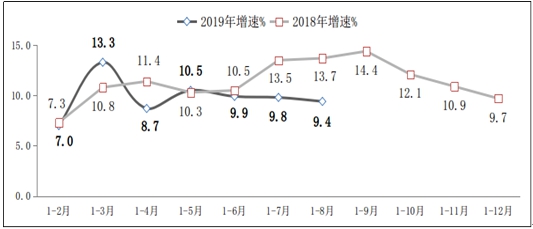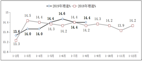 图4 2018-2019年1-8月软件业从业人员工资总额增长情况
