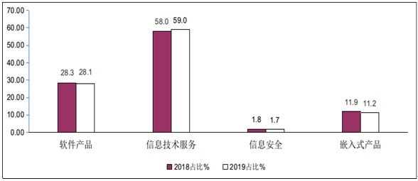 信息技术服务收入较快增长,电子商务平台技术服务收入增势突出。1-8月,信息技术服务实现收入26476亿元,同比增长16.9%,增速同比回落1.6个百分点,较1-7月回落0.4个百分点,高于全行业平均水平2个百分点,在全行业收入中占比为59.0%。其中,云服务收入同比增长13.6%,较1-7月回落0.1个百分点;大数据服务收入增长18.9%,比1-7月回升1.9个百分点;电子商务平台技术服务收入增长28.7%,同比提高9.5个百分点;集成电路设计服务收入增长9.4%,同比提高2.4个百分点,较1-7月回落3.3个百分点;其他信息技术服务(信息技术咨询设计服务、系统集成、运维服务、运营服务等)增长15.0%,较1-7月回升0.7个百分点。