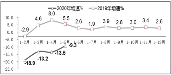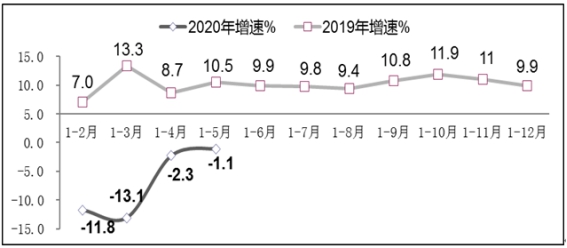 图2 2019年-2020年1-5月软件业利润总额增长情况