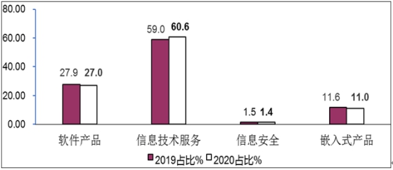 图5 2019年/2020年1-5月软件业分类收入占比情况