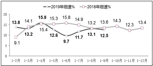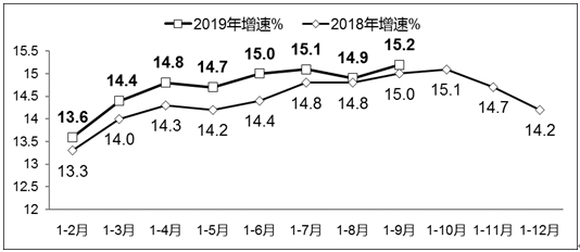 图4 2018-2019年前三季度软件业从业人员工资总额增长情况