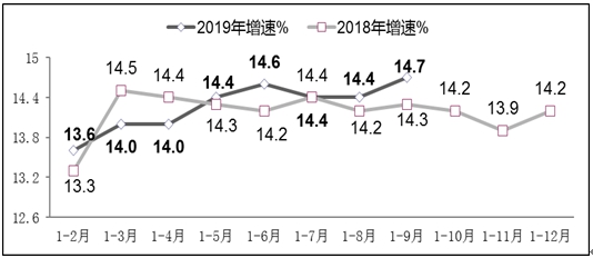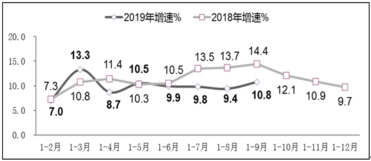 图1 2018年-2019年前三季度软件业务收入增长情况