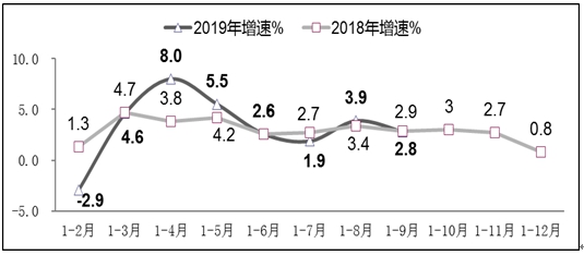 图2 2018 年-2019年前三季度软件业利润总额增长情况