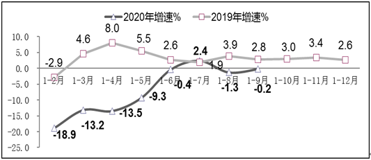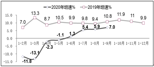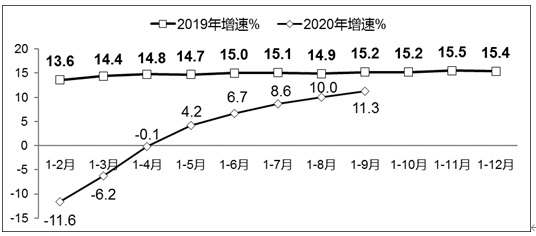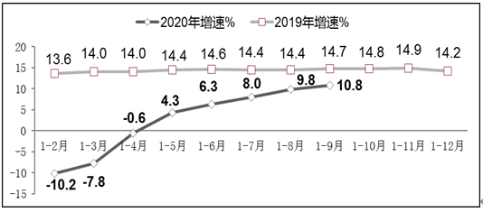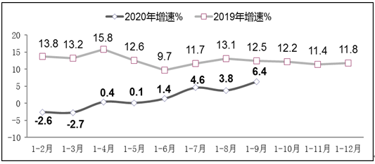 图2  2019年-2020年前三季度软件业利润总额增长情况