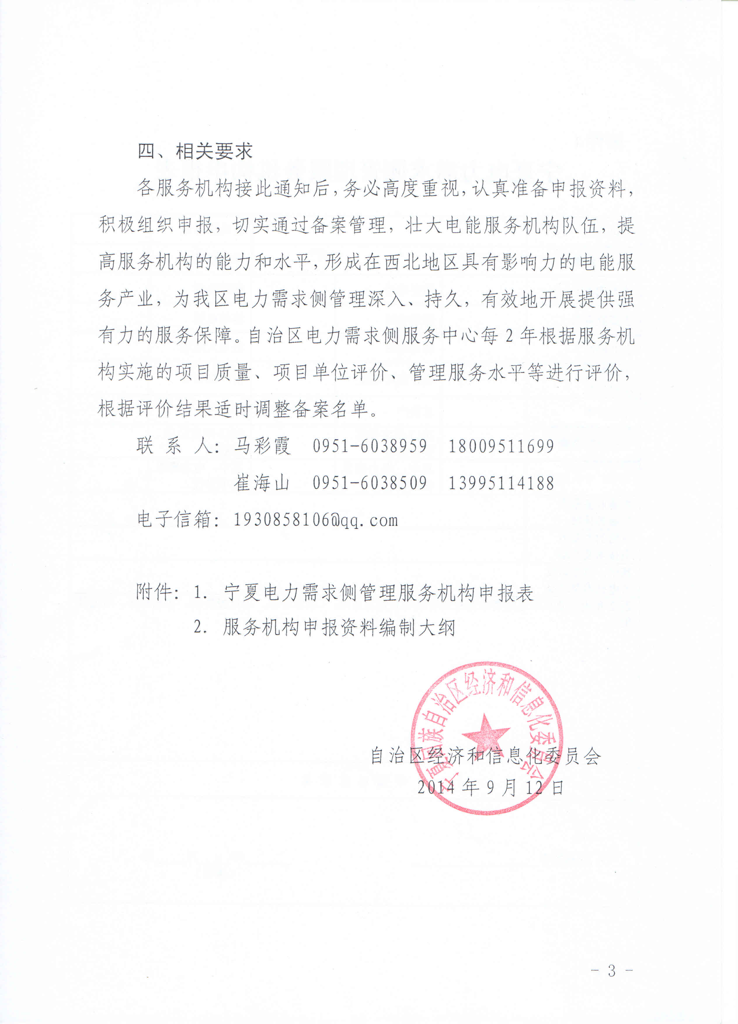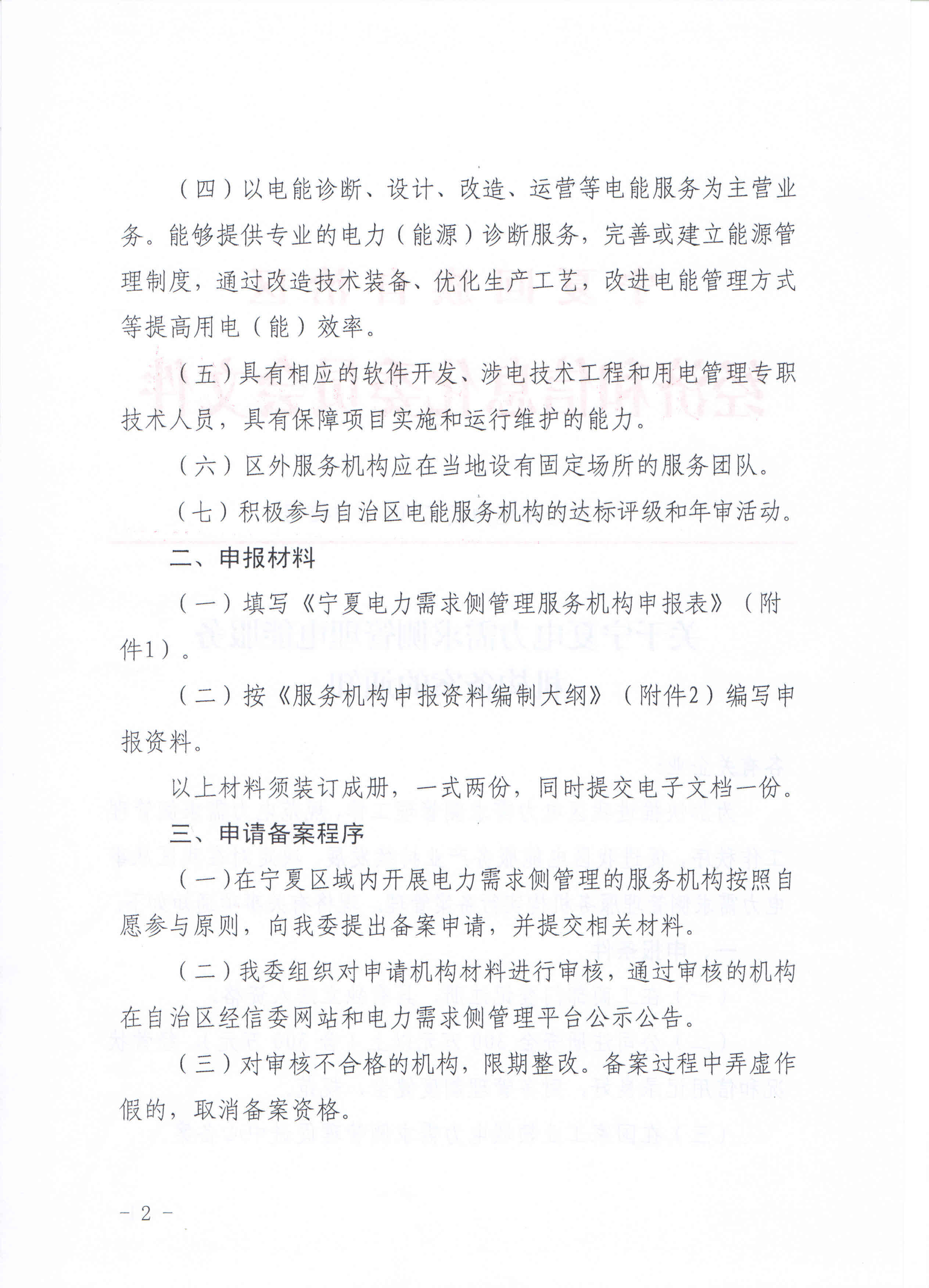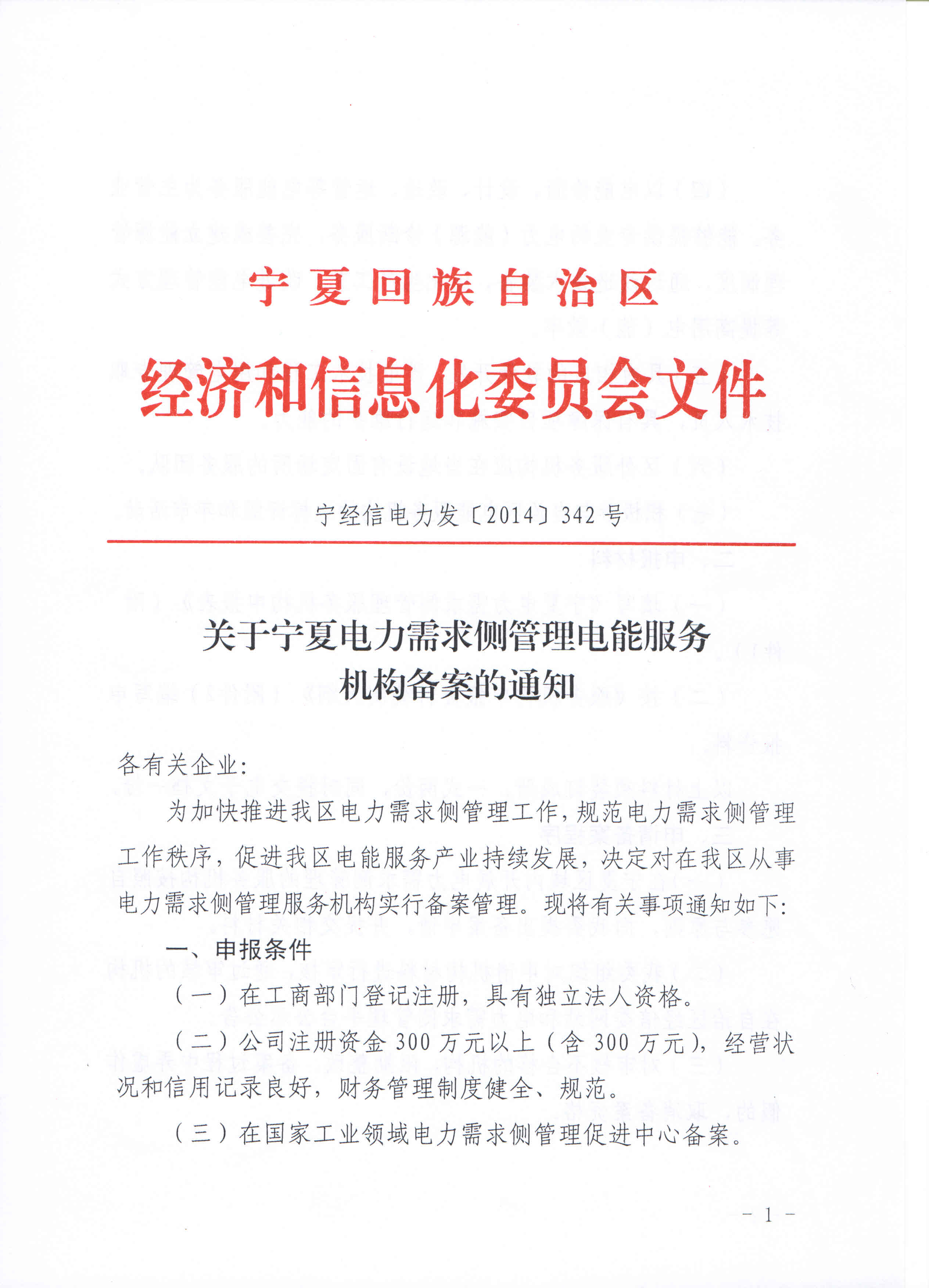 宁夏经信委印发通知明确电力需求侧管理电能服务机构备案工作