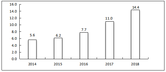 图6 2014年-2018年我国企业平均软件著作权数量(个)