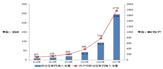 图3-1 2012-2017年移动互联网接入流量增长情况