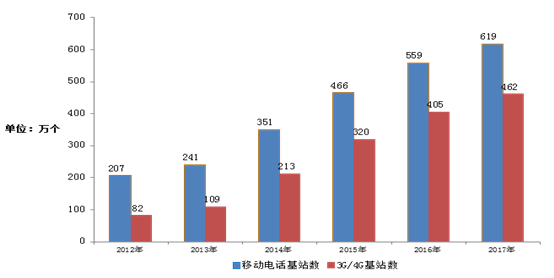 图4-1 2012-2017年移动电话基站发展情况