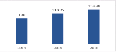 研究报告显示,2016年全国电子信息制造业综合发展指数134.48,比2015年提升15.53,同比增长13%,呈现连续平稳增长的态势。