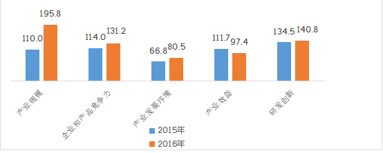图3-32016年江苏省电子信息制造业综合发展指数一级指标表现